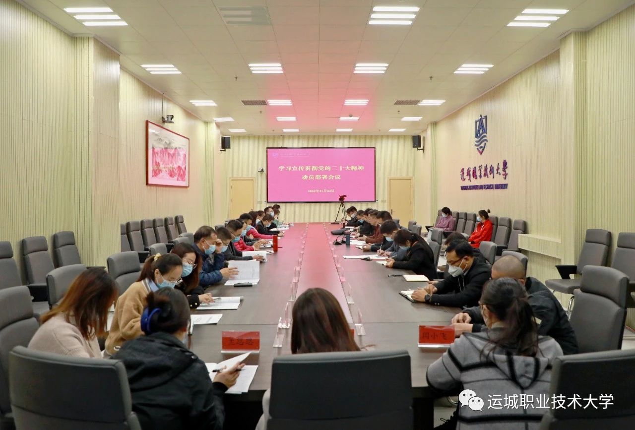 11月23日,永利官网召开学习宣传贯彻党的二十大精神动员部署会议。校长张辉作学习宣传贯彻党的二十大精神动员部署和学习宣传贯彻党的二十大精神辅导报告。校级班子成员,各党支部书记、副书记,各二级学院院长、副院长,思政部、基础部、心理发展中心、体育部主任,各职能教辅部门负责人,校工会、校团委负责人,各二级学院分团委书记参会。