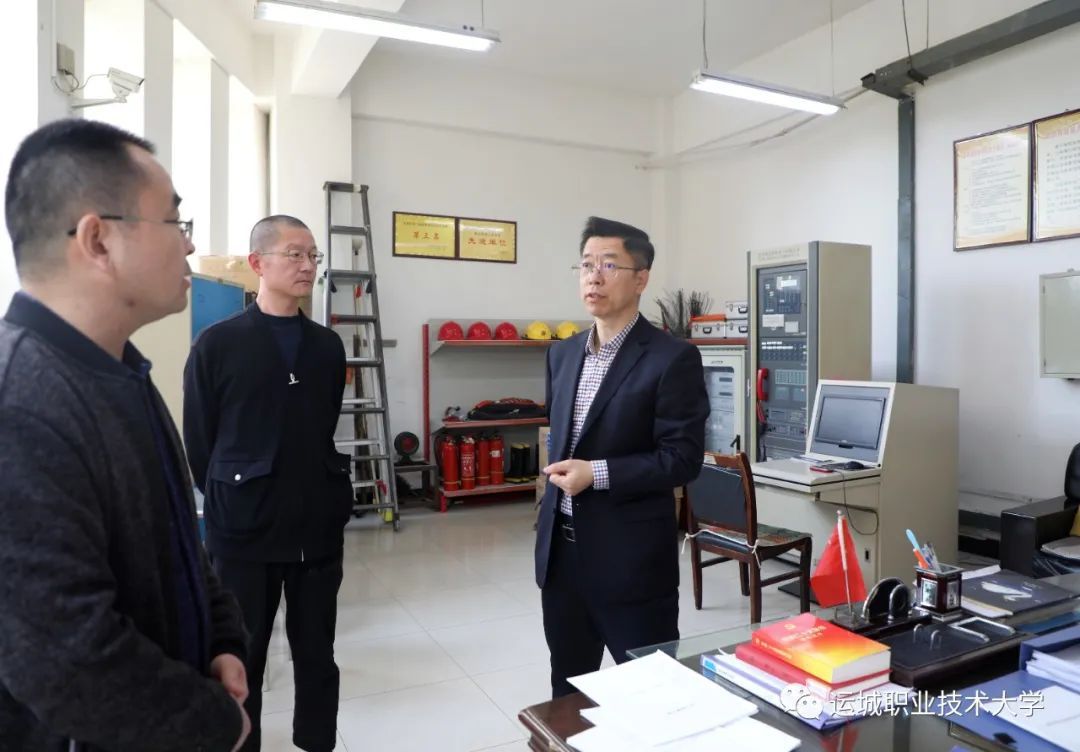 张辉校长一行对重点区域、重点部位进行安全隐患检查,特别针对各教学楼、消防监控室、实验实训室、1号2号服务中心、学生公寓、图书馆等重点场所进行全面细致的检查,每到一处都仔细查看,提出具体要求,明确整改举措,力求做到全覆盖、无缝隙、不留白。