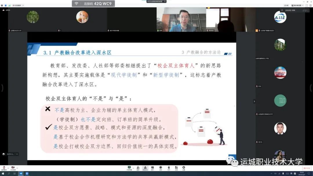 3月7日,校长张辉应山西省发改委产教融合促进会邀请,为我省产教融合型企业、产教融合基地相关负责人上了一堂理论与实际紧密结合的产教融合线上培育课。