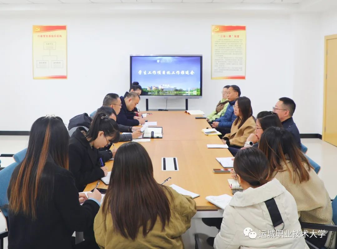 为进一步推动学生工作内涵发展、创新发展,增强学生工作主动性、针对性和实效性,全面提升服务学生成长成才水平,构建学生自主教育管理体系,本学期学生处对学生工作进行项目化管理,经过前期筹备、调研、讨论形成四类16项学生工作项目,并于3月17日召开第一次学生工作项目化推进会,明确了工作思路及申报流程。