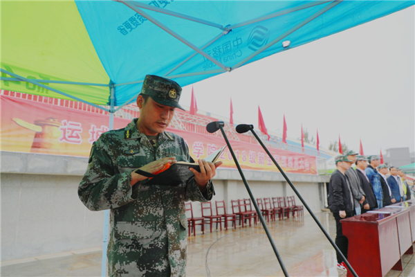 盐湖区武装部军训大队副大队长耿文教官讲话