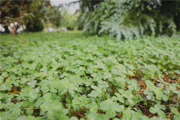 绵绵细雨和美丽的校园相伴交织